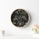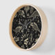 Journey into a mystical, prehistoric world with this striking wall clock. The intricate design features stylized dinosaurs, T-Rex skulls, and primitive flora, all rendered in a bold black and white palette reminiscent of ancient engravings, tribal tattoos, or gothic art.