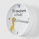 Este divertido reloj de pared dice "¡Es espagueti en punto!" y tiene un dibujo de un tenedor con hebras de espagueti y trozos de tomate. Ideal para los amantes de la pasta y los admiradores de la cocina italiana.