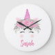 Un Reloj Grande Personalizado De Unicornio Con Un Nombre Rosa Que Puede Personalizar Añadiendo Su Nombre!