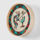 ¡Brilla tu casa con este reloj de pared de madera del suroeste de Kokopelli "One of a Kind"! Cuenta con un Kokopelli del suroeste que toca la flauta y baila alrededor de un actus bajo el sol sobre un fondo de piedra arenisca de Tan... ¡Rodeado por un borde del suroeste en turquesa, Naranja y negro! Diseño De Arte Original Del Artista Kerry Miller.