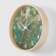 Decorate a room with this acrylic wall clock with white numerals and features the image of a green mineral stone composed of chrysocolla and serpentine. Select your clock style. Use to decorate a living room, dining room, kitchen, bedroom, or any other room.
