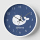 Este reloj muestra nuestro diseño de ballena blanca sobre un fondo azul marino con números blancos. Agregue un nombre, si lo desea. © Art by Jess