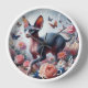 Un gato de esfinx de bonito camina a través de flores y mariposas coloridas en este divertido diseño.