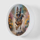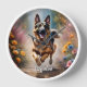 Un hermoso pastor alemán recorre flores de colores en este diseño, perfecto para criadores, perreras o amantes del perro.