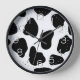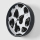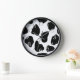 Patrón negrita de impresión de vacas blancas y negras con números de reloj.