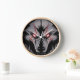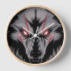 Esta imagen muestra una criatura amenazante, parecida a un lobo, con ojos rojos agudos y brillantes y una expresión feroz. La cara de la criatura está parcialmente oscurecida por una serie de arañazos rojos profundos o marcas de garra, y su piel aparece texturada con una mezcla de tonos oscuros y claros. El fondo es predominantemente negro con manchas de rojo, lo que añade a la atmósfera ominosa general.