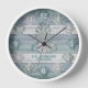 Reloj Madera rústica azul playa con conchas marinas