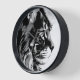 A striking Maine Coon Wall Clock featuring a high-contrast black & white cat portrait. This modern timepiece adds elegance to any room. Perfect feline home decor for cat lovers and Maine Coon owners. With a sleek black frame, it makes a unique, thoughtful gift or stylish statement piece for your kitchen or office.