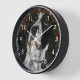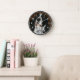 Elegante reloj de pared con números blancos que muestra la imagen de una adorable española Springer. La cara del reloj tiene unas tiras bonitas y pequeñas en cada marca de 5 segundos. Utilícelo para decorar una sala de estar, un dormitorio o cualquier otra habitación. Seleccione su tamaño y estilo de reloj. Además, puede ser personalizar reemplazar la imagen con su propia foto del mascota.
