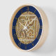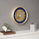 Este elegante reloj presenta un mosaico medieval con motivos geométricos que se alternan entre el cristal y las baldosas de piedra natural: oro, mármol rojo y blanco, o granito y travertino.