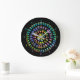 Un reloj acrílico plano decorado con una mandala colorida hecha de Mini Bean Poads™. Esta es una foto de un lote de esculturas de edición limitada Poad™ pintadas individualmente a mano por Melody Pena y producidas por Windstone Editions.