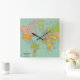 Reloj cuadrado con el mapa del mundo como fondo. ¡Perfecto para cualquier habitación!