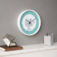 Este reloj muestra nuestra bonita ballena gris con un borde verde azulado y números blancos. Agregue un nombre, si lo desea. © Art by Jess