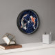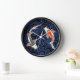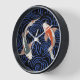 Un moderno diseño de reloj de inspiración japonesa con colores vivos de colores naranja y blanco que contrasta con el negro y el azul oscuro.