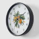 Naranjas lindas con reloj de pared redondo de verdor. Es un regalo ideal o puedes comprarlo para ti mismo para alegrar tu espacio de vida.