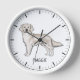 El original ilustracion personalizado de Destei de un lindo perro de raza Golden Retriever color crema inglesa. La cara del reloj es de líneas modernas y sencillas. También hay un área de texto personalizable para un nombre u otro texto personalizado.