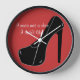 Este divertido diseño presenta un estilete negro en tacón alto sobre un fondo rojo junto con un texto que dice: nunca conocí un zapato que no me gustaba. El texto puede cambiarse o eliminarse fácilmente. Personalizar fácilmente el color de fondo haciendo clic en Personalizar, Edición y Fondo.