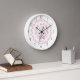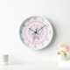 Añade un toque personal al espacio de tu niñita con este encantador reloj de pared personalizado que incluye un ramo de flores de bonito atado con un arco rosa, un borde de vieiras de moda, unos pájaros planos bonitos y un nombre de personalizable. Los tonos suaves y mullidos de violeta, rosa y melocotón le dan un toque femenino a la guardería infantil o al dormitorio de un niño pequeño o chica. Personalice este reloj agregando el nombre de un niño. Perfecto para mamás nuevas, duchas para bebés o regalos para bebés.