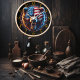 Un oso majestuoso con orgullosamente una bandera norteamericana como portavoz, encarnando fuerza, libertad y patriotismo. Con números de reloj de oro