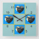 Fotos mascotas. Personalice con una imagen de su mascota para mostrarla en los 12, 3, 6 y 9 puntos de este reloj de "parche de trabajo". Su imagen cuadrada se colocará dentro del marco con forma de corazón azul. El fondo se puede personalizar/editar según el color que elija.