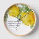 Este reloj de pared presenta una pintura vintage de rosas amarillas y una cita de Leo Buscaglia. Compre este reloj de pared diseñado para la amistad como regalo de inauguración o cumpleaños.