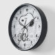 Esta obra de arte de Peanuts muestra a Snoopy sentado en el fondo de tiras cómicas Charles M. Schulz en blanco y negro.