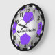 El reloj personalizado lindo estupendo del fútbol en púrpura, explosión blanco y negro fresca enmarca el reloj lindo del balón de fútbol con su nombre y o número del jersey. La gran decoración del dormitorio del fútbol y los regalos mayores de la noche del fútbol para los chicas o mí pueden CAMBIAR COLORES uces de los a sus colores de la escuela o a los colores del sitio del fútbol. LLAMADA Linda en: 239-949-9090