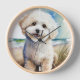 Perro dulce Bichon Frise en las obras de arte de la playa a acuarela.