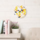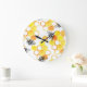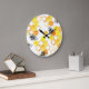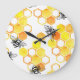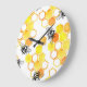 Reloj Redondo Grande Abejas de miel: Patrón de acuarela amarillo
