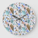Reloj Redondo Grande acuarela abstracta: fondo blanco dibujado a mano.