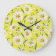 Reloj Redondo Grande acuarela margarita, patrón amarillo sin costuras.