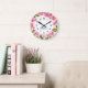 Reloj Redondo Grande Acuarela Pink Hydrangea Lacecaps Ilustracion