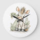 Reloj Redondo Grande Adorables animales bebés en acuarela con letras de