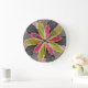 Reloj Redondo Grande Alegría, fractal de flor de antracita verde rosa