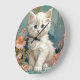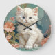 Reloj con un gato blanco al estilo de Alphonse Mucha! Este gatito de ojos azules y esponjoso posa con flores rosadas y mantas azules. ¡Un regalo fabuloso para los amantes del gato y de los coleccionistas Art Nouveau!