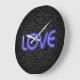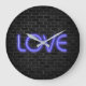 Reloj Redondo Grande AMAR texto en luces de neón en ladrillo
