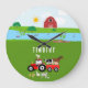 Reloj Redondo Grande Animales de granja y tractor rojo Barnyard nombre