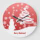 Reloj Redondo Grande Árbol blanco de Navidad y muñeco de nieve