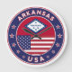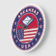 Insignia de Arkansas con bandera de Arkansas y bandera de los colores de Estados Unidos, forma redondeada. Emblema de Arkansas. Sello de Arkansas. Colección de Estados Unidos.