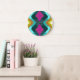 Reloj de arte abstracto colorido. Colores brillantes y audaces dibujados a mano de verde azul, magenta, dorado y blanco en este lindo reloj de pared. ¡Disfruta!