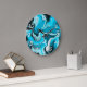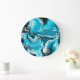 Reloj Redondo Grande Arte de fluidos de mármol azul, negro y blanco