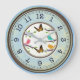 Reloj Redondo Grande Aves y Mariposas Estilo Granja Azul