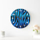 Reloj Redondo Grande Awesome Blue and Black Zebra Stripes Pattern
