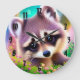 Un adorable bebé mapache florido y fondo de arcoiris. Perfecto para los bebés o para los niños.