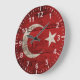 Reloj Redondo Grande Bandera de Turquía en grano de vieja madera