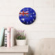 Reloj Redondo Grande Bandera negra de Australia del Grunge