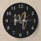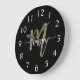 Reloj Redondo Grande Black Gold Modern Script Monograma Nombre