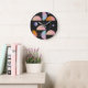 Reloj Redondo Grande Black Pink Orange Abstract Art Pattern