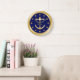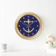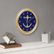 Relojes náuticos con el ancla de un barco con estampado dorado y el grafito de ojos de buey dorado en la cara del reloj en este decorado de pared decorativo diseño de relojes para su barco, velero, cocina o cualquier habitación de su casa que desee añadir un poco de decoración y carácter náutico. Los colores incluyen el oro y el negro.