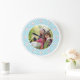 Reloj Redondo Grande Blue and White Polka Dot Personalized Photo